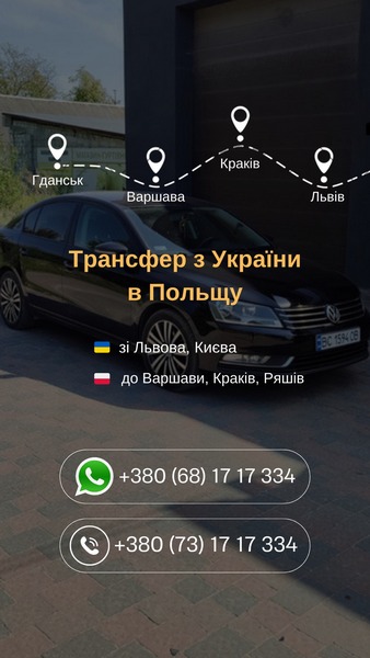Плануєте подорож до Європи? Пропонуємо надійний та безпечний трансфер з України до Європи — зручний варіант для тих, хто цінує комфорт, пунктуальність і персональний сервіс. Наша компанія здійснює пасажирські перевезення до Польщі, Німеччини, Чехії, Угорщини, Словаччини, Австрії та інших країн Євросоюзу.